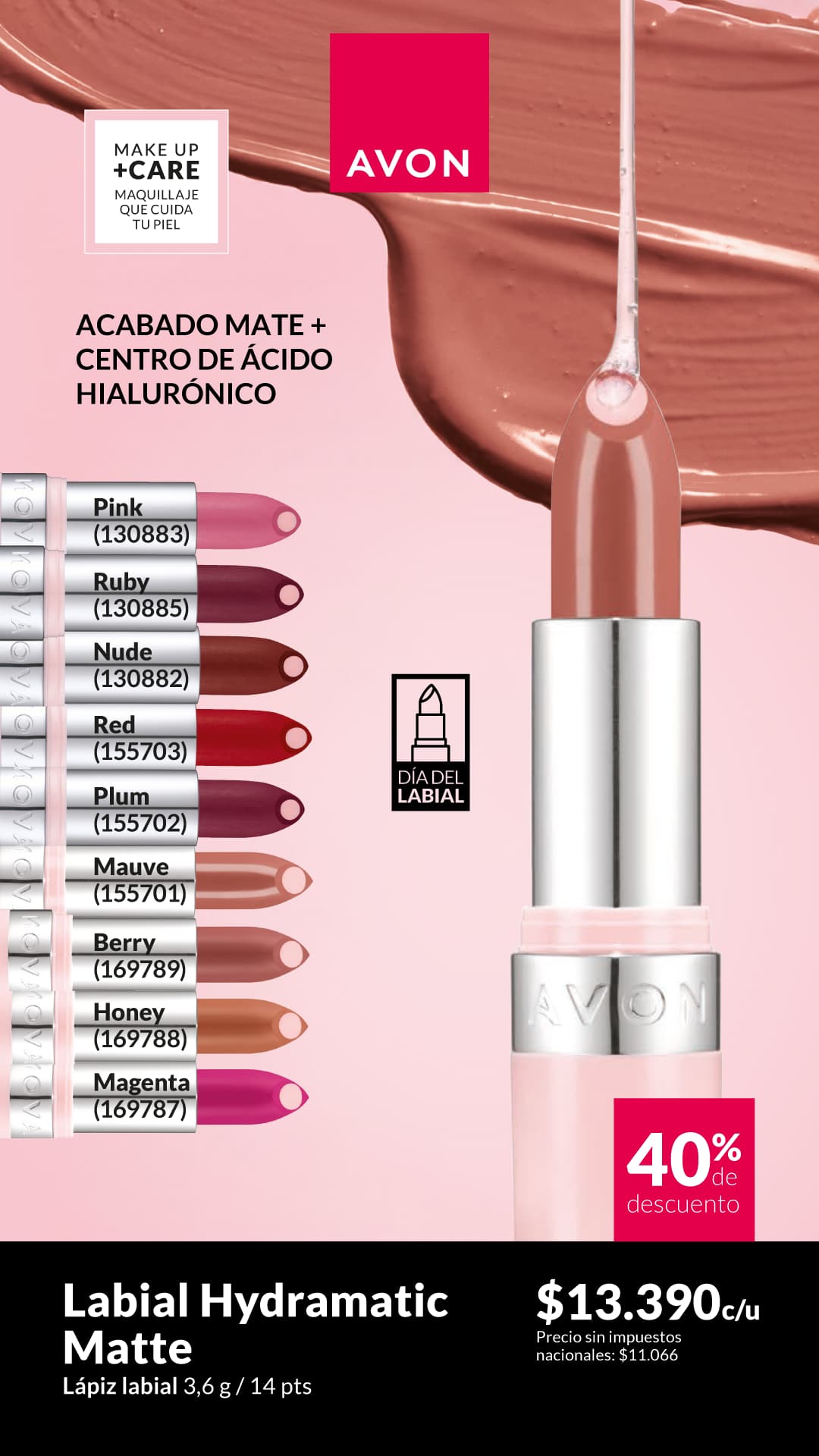 Labial hydramatic radiante, con centro de ácido hialurónico.